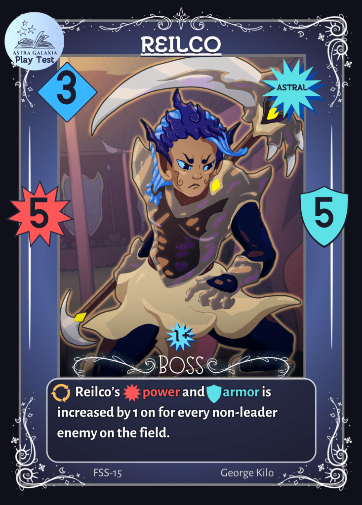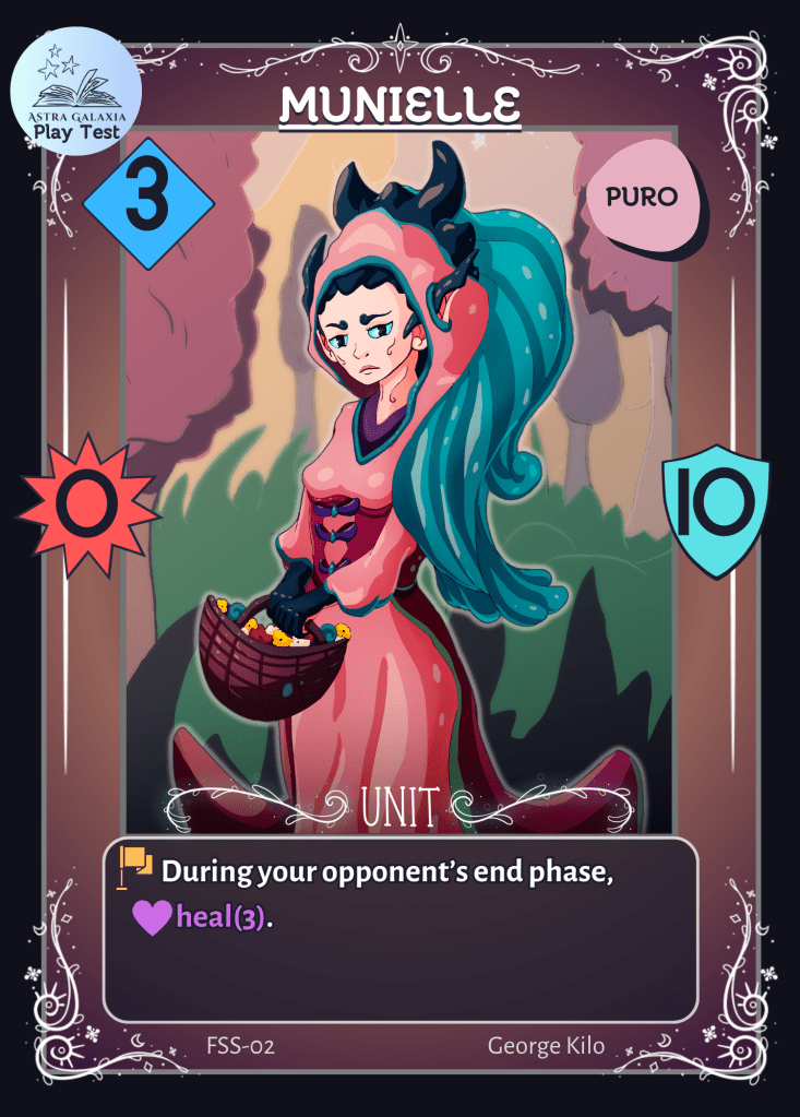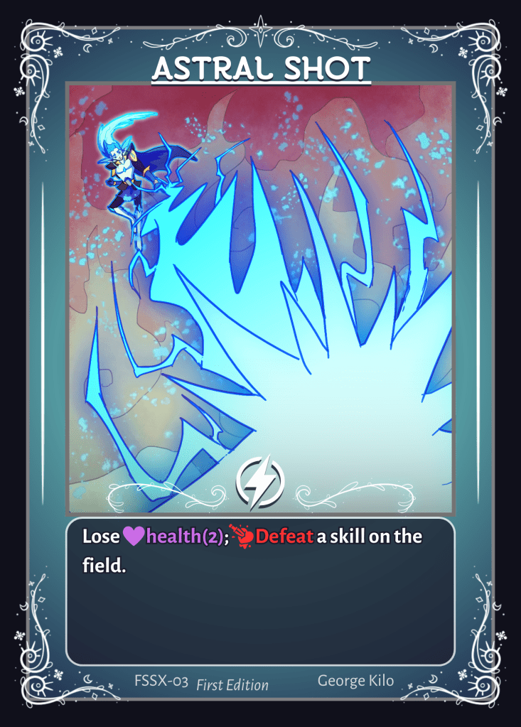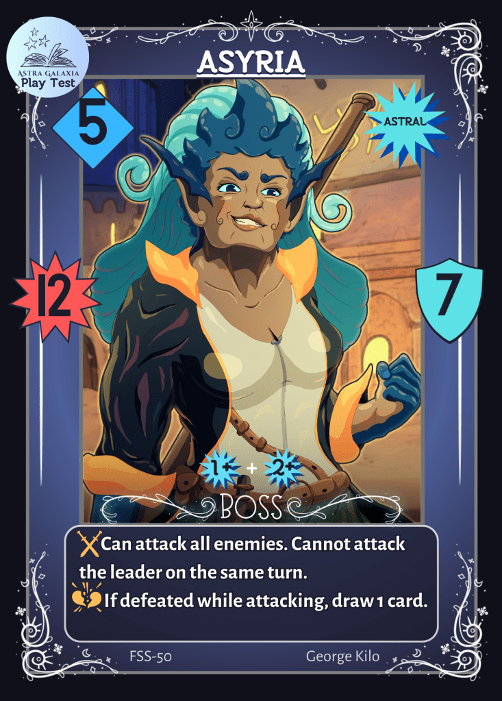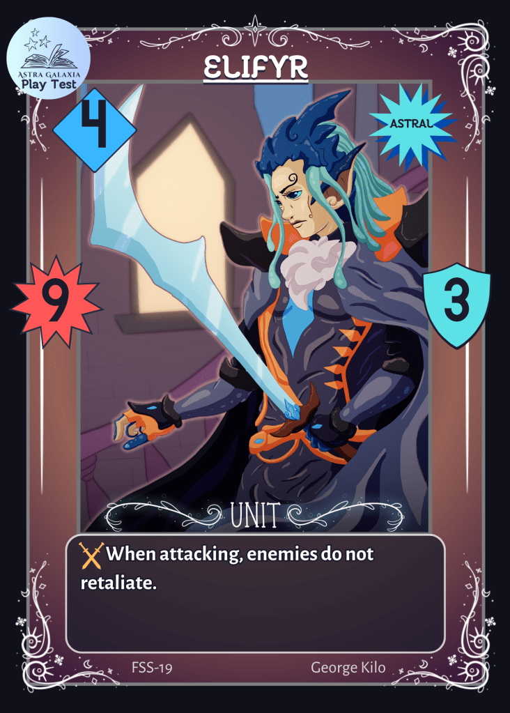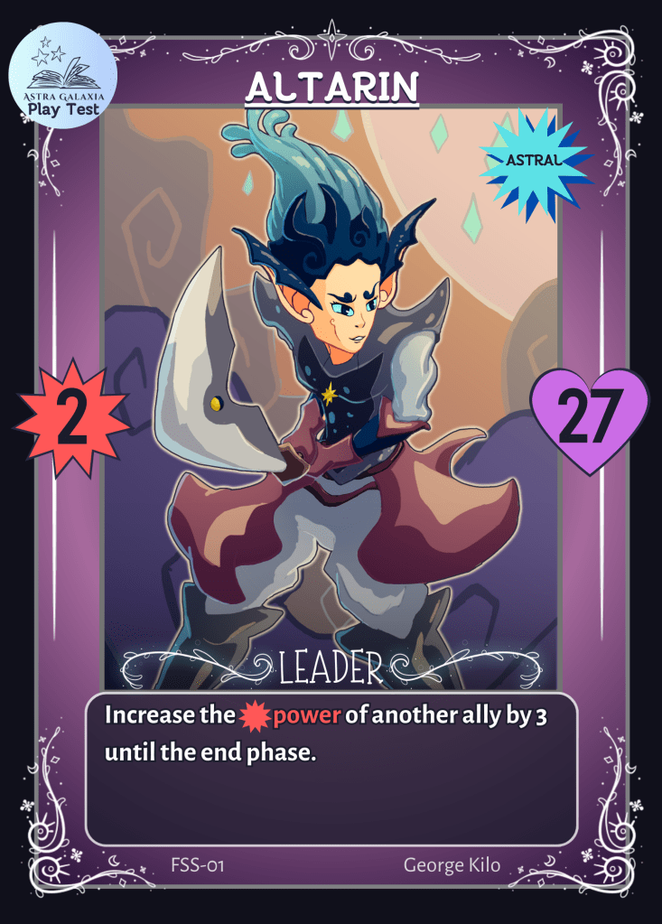 The Astra Galaxia TCG is a card game meant for trading and dueling, representing iconic characters and monsters from the action-platformer game ‘Astra: Fading Stars’ and the fantasy book ‘Song of Elusica’. You can play it now by printing the cards!