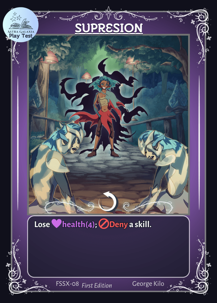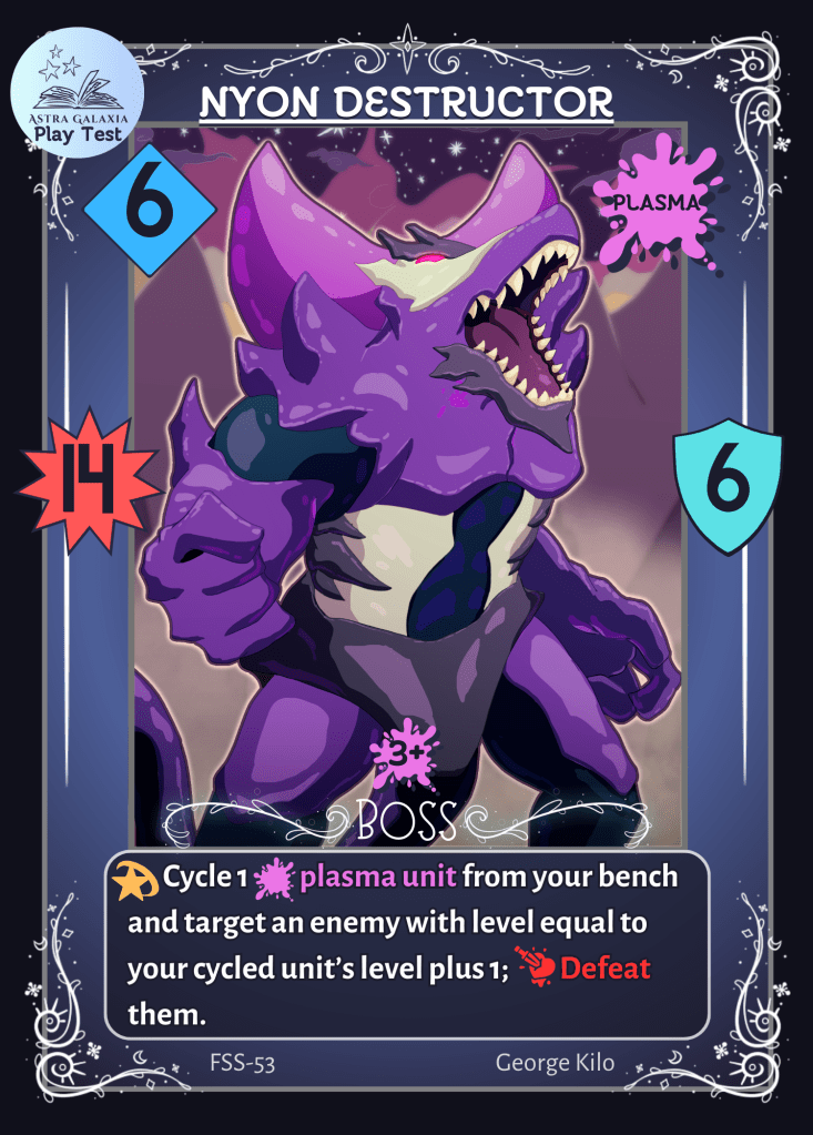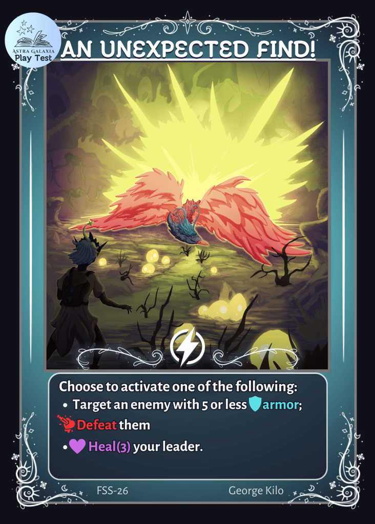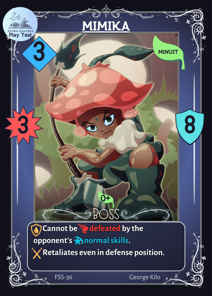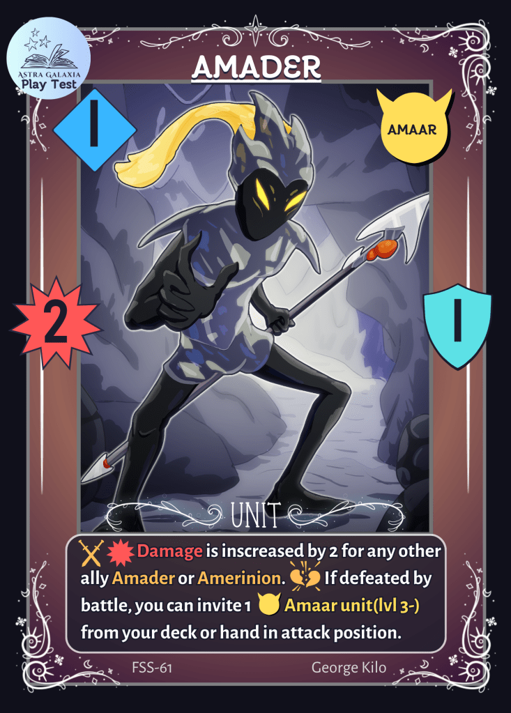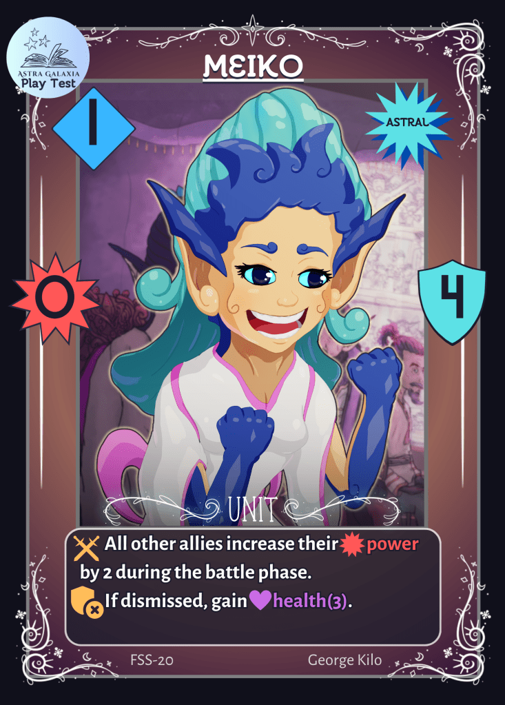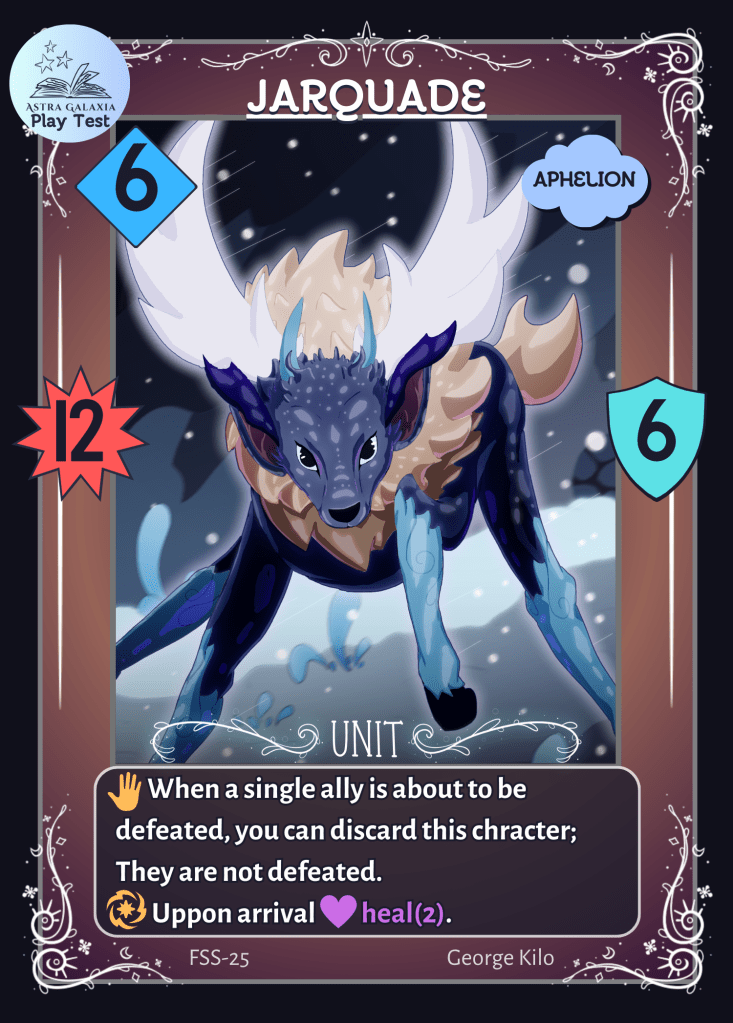 The Astra Galaxia TCG is a card game meant for trading and dueling, representing iconic characters and monsters from the action-platformer game ‘Astra: Fading Stars’ and the fantasy book ‘Song of Elusica’. You can play it now by printing the cards!