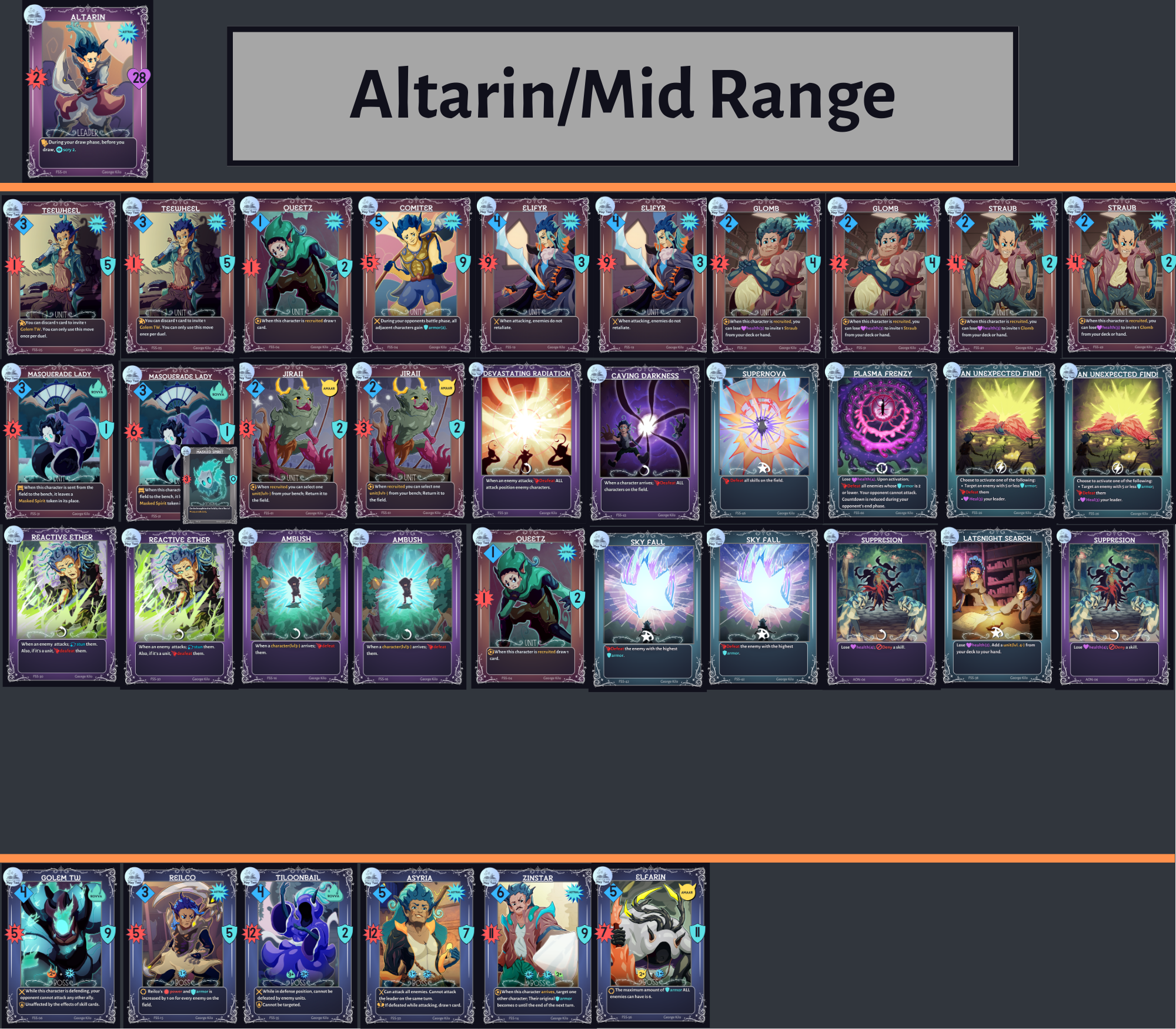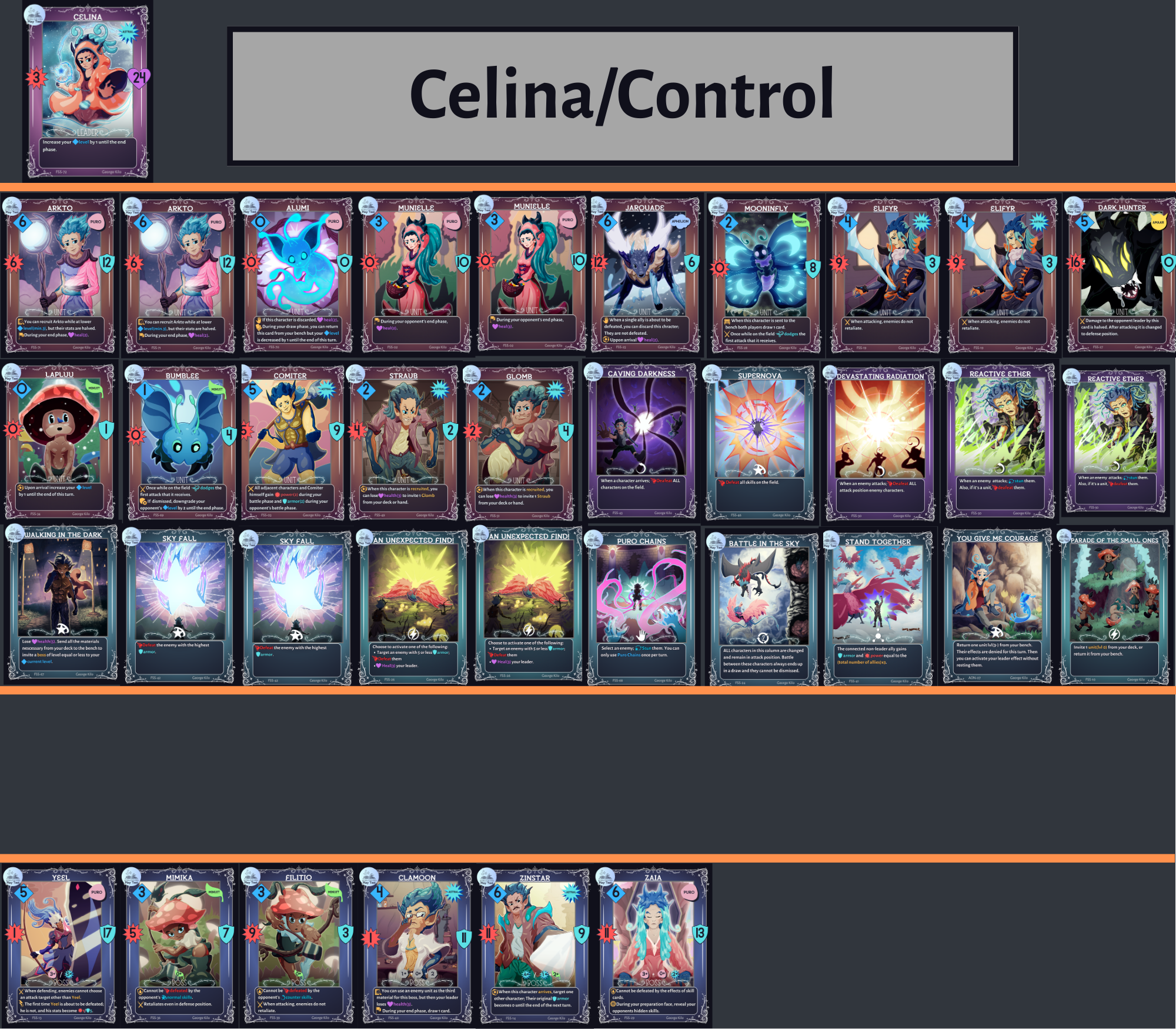 The goal of this deck is to constantly keep the advantage as it gradually becomes stronger during the late game. It can play both aggressively and defensively, and it has a lot of tools to counter any situation. Late Bosses like Asyria and Zinstar can easily clear your opponent’s board and push towards the win. The early Boss Tiloonbail is really useful in taking out enemies with high defense, while Reilco can be played as a fighter for both defense and offense. The normal skill ‘Focused Training’ is really optimal here, as it enhances one of your already strong characters with more power to push even through enemies with the highest defense while also being immune for one turn.